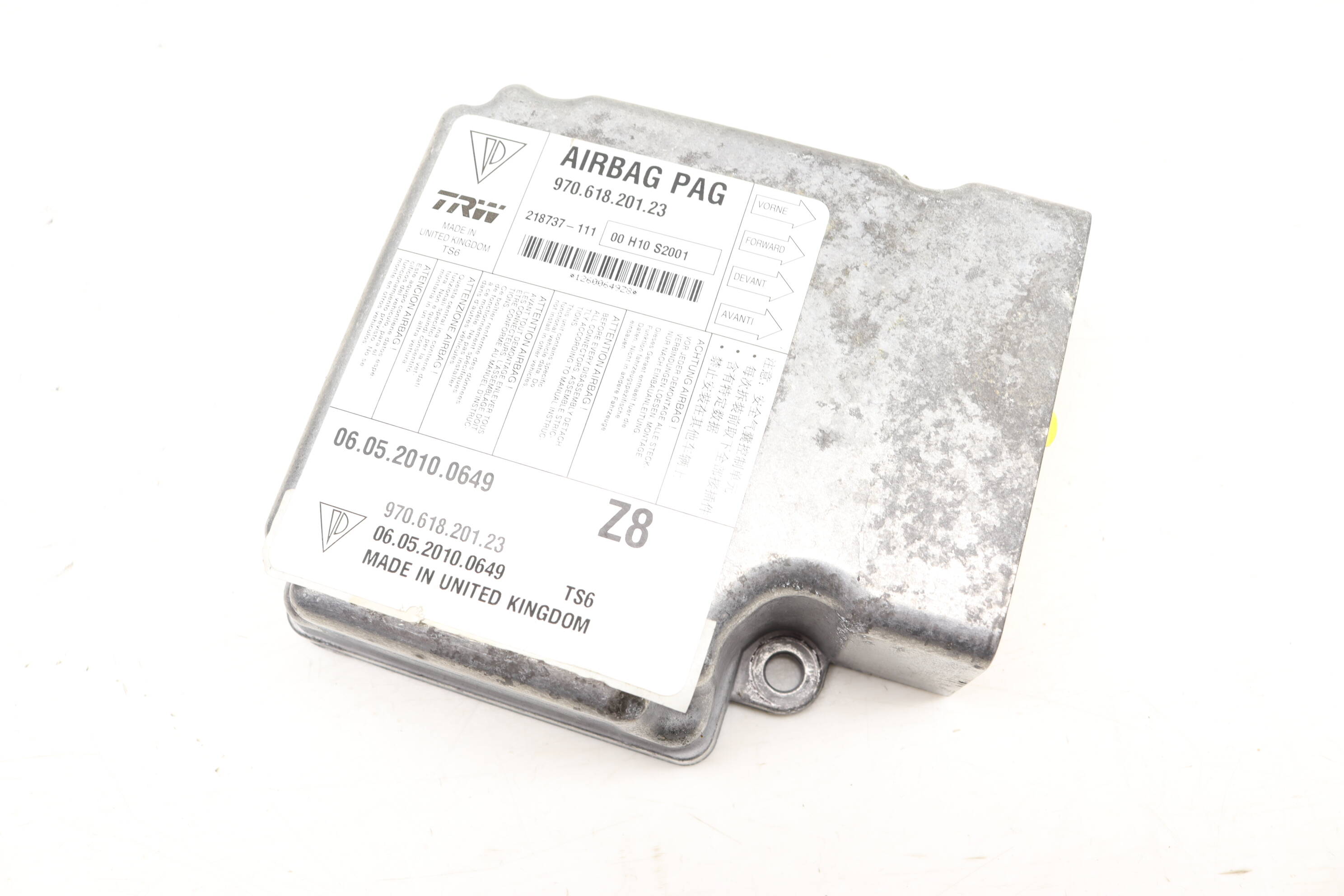 This OEM airbag control module (Part Number 97061820123) is a genuine component sourced from salvaged Porsche vehicles. It is designed for precise installation under the center console in various 2010-2016 Porsche Panamera models, including the 4, 4S, GTS, and Turbo variants. This critical module manages airbag deployment during an accident, ensuring passenger safety. Replace malfunctioning or non-functioning units that may trigger warning lights or fail to deploy airbags. Additionally compatible with part numbers 97061820122, 97061820121, and others, this module is a reliable factory-original solution for restoring functionality to your vehicle's airbag system. Programming is required for installation.