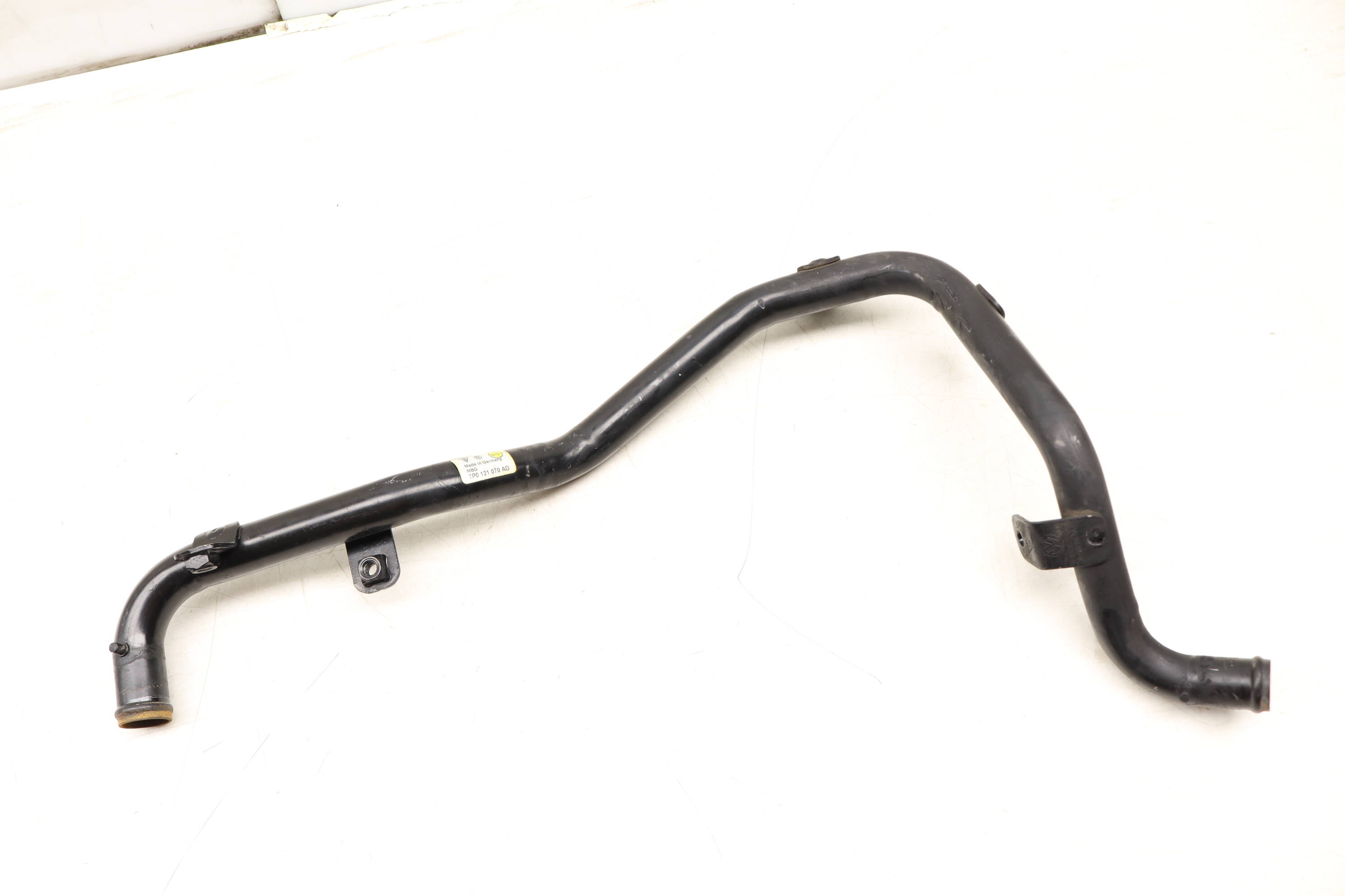 This genuine OEM coolant pipe, part number 7P0121070AD, serves as a critical component for the cooling system in various Volkswagen and Porsche models. Compatible with 2011-2015 Volkswagen Touareg, this factory-original part efficiently facilitates electric drive cooling, ensuring optimal engine temperature management. Additionally, it fits 2011-2014 Porsche Cayenne and 2012-2013 Porsche Panamera, making it essential for maintaining performance and preventing overheating issues. If your existing pipe is worn or damaged, this replacement will restore functionality like new. Known also as a water pipe, this part integrates seamlessly, securing a precise fit and reliable operation. Other compatible part numbers include 7P0121070G and 95810637101.