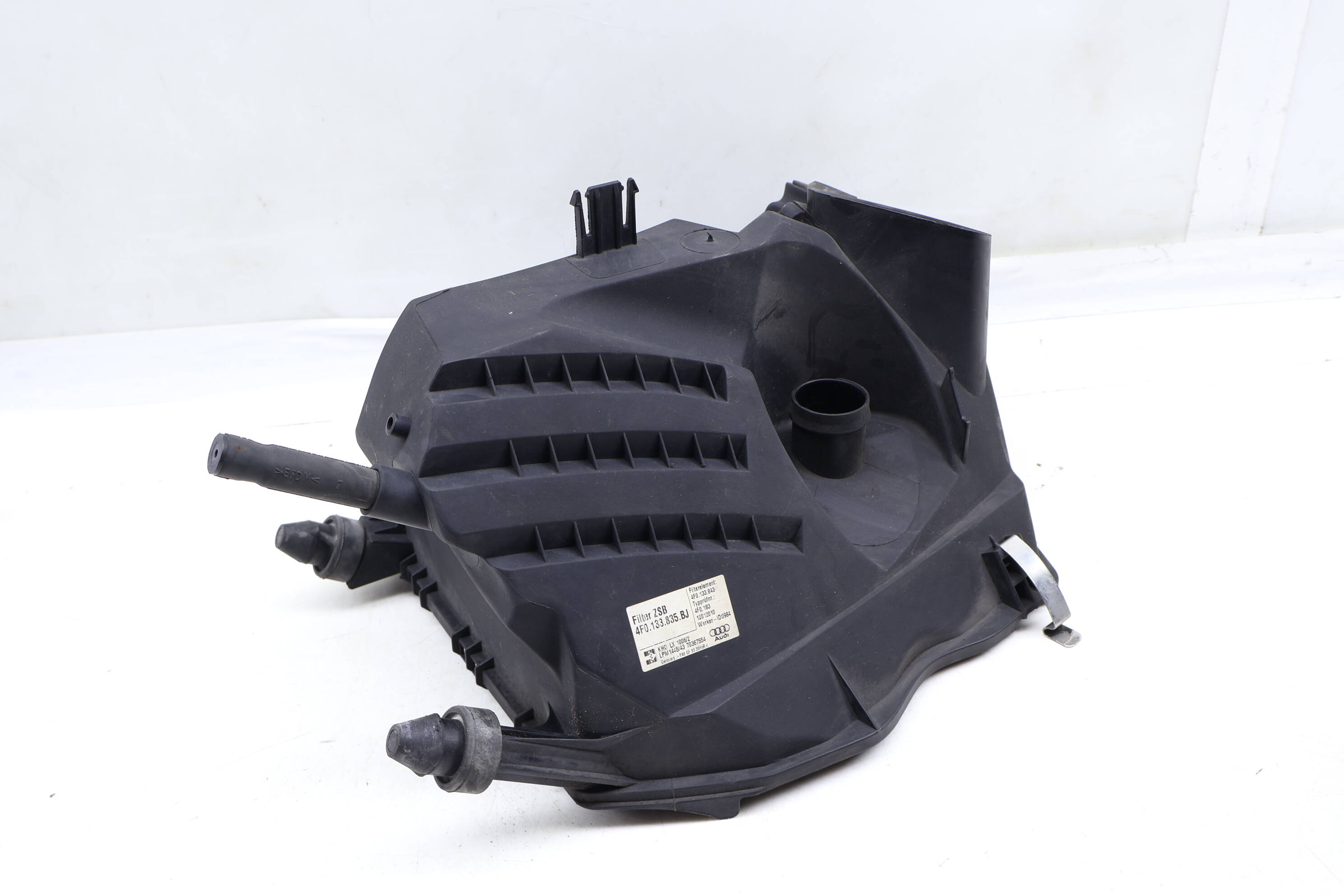 Engine Air Filter Box - Lower Half for Audi A6 Quattro (2009-2011). This essential component houses the air filter, preventing contaminants from entering the engine's intake system. It plays a crucial role in maintaining optimal air flow and engine performance. Common issues include dirt accumulation and structural damage leading to reduced efficiency. This listing addresses those concerns by providing a reliable replacement. Interchangeable with OEM part numbers 4F0133837BL, 4F0133835BE, 4F0133837BK, 4F0133835BD, 4F0133837BM, 4F0133837BN, and 4F0133835BJ. Designed specifically for the A6 Quattro's 3.0L engine, ensuring a precise fit and function.