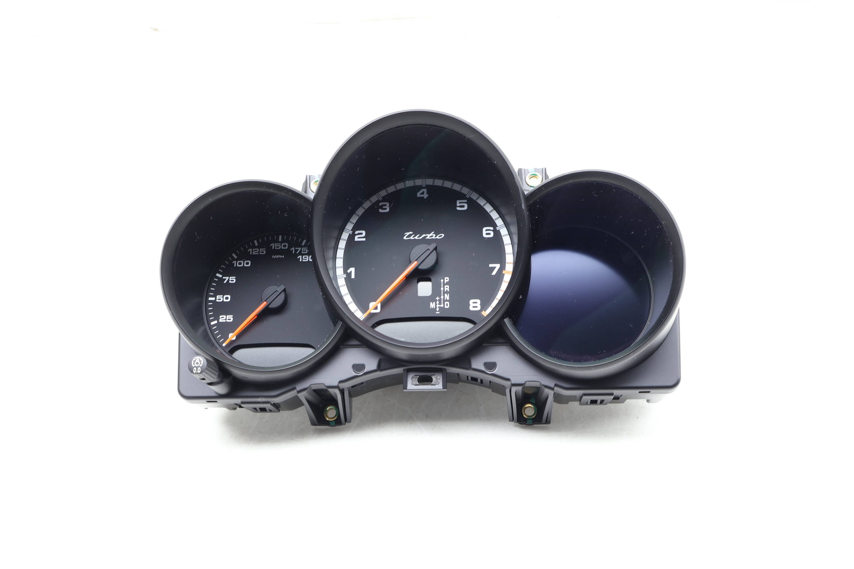 This OEM Instrument Cluster / Speedometer (Turbo), part number 95B920902P, is a factory-original component specifically designed for the 2015-2016 Porsche Macan Turbo equipped with a 3.6L V6 gas engine. This vital part functions as the vehicle's primary interface for tracking speed, RPM, and other crucial engine metrics, ensuring accurate real-time data essential for safe driving.