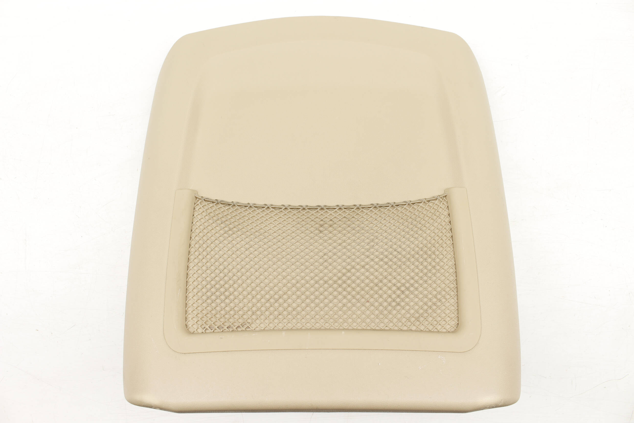 The SEAT BACK PANEL with NET is an essential component located at the rear of the front seats in BMW X3 models from 2004 to 2010. This factory-original part serves to enhance the storage capabilities of your vehicle's interior, providing a secure area for smaller items while maintaining a sleek design. It interfaces seamlessly with the rear seat structure, ensuring stability and support during normal vehicle operation.