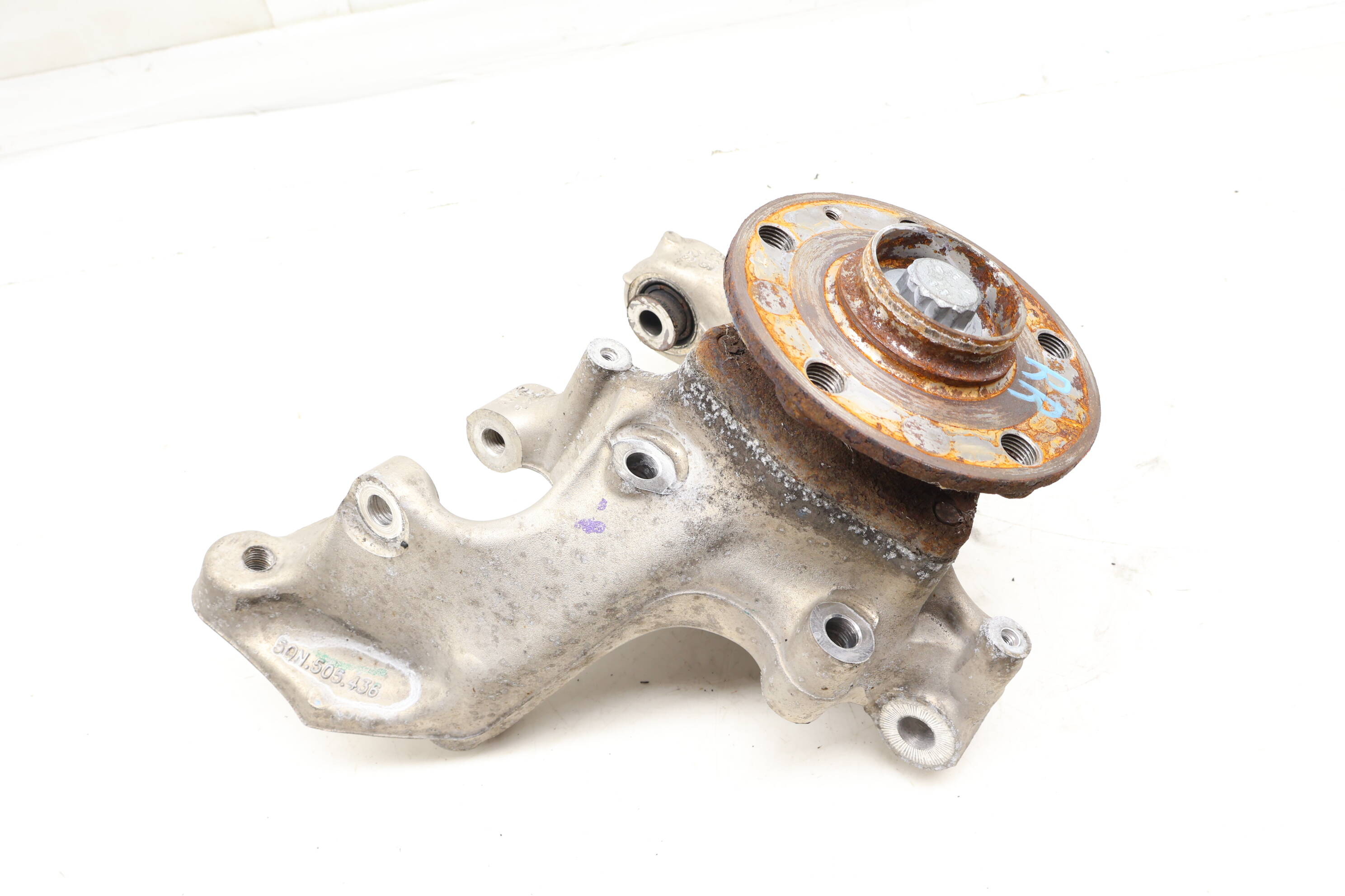 Spindle Knuckle with Wheel Bearing, Rear Right. This component is crucial for maintaining proper wheel alignment and suspension function, providing stability during driving conditions. It addresses common issues such as uneven tire wear and steering difficulties caused by worn-out knuckles. Compatible with Audi Q3 (2019-2022) and Volkswagen Tiguan (2018-2021), this part replaces OEM numbers 5QJ505436B, 5QF505436F, and 5QN505436. Engine variations and body styles are not applicable. Ensure optimal performance and safety with this essential suspension component. Boxed dimensions: Height 10", Length 18", Width 11".