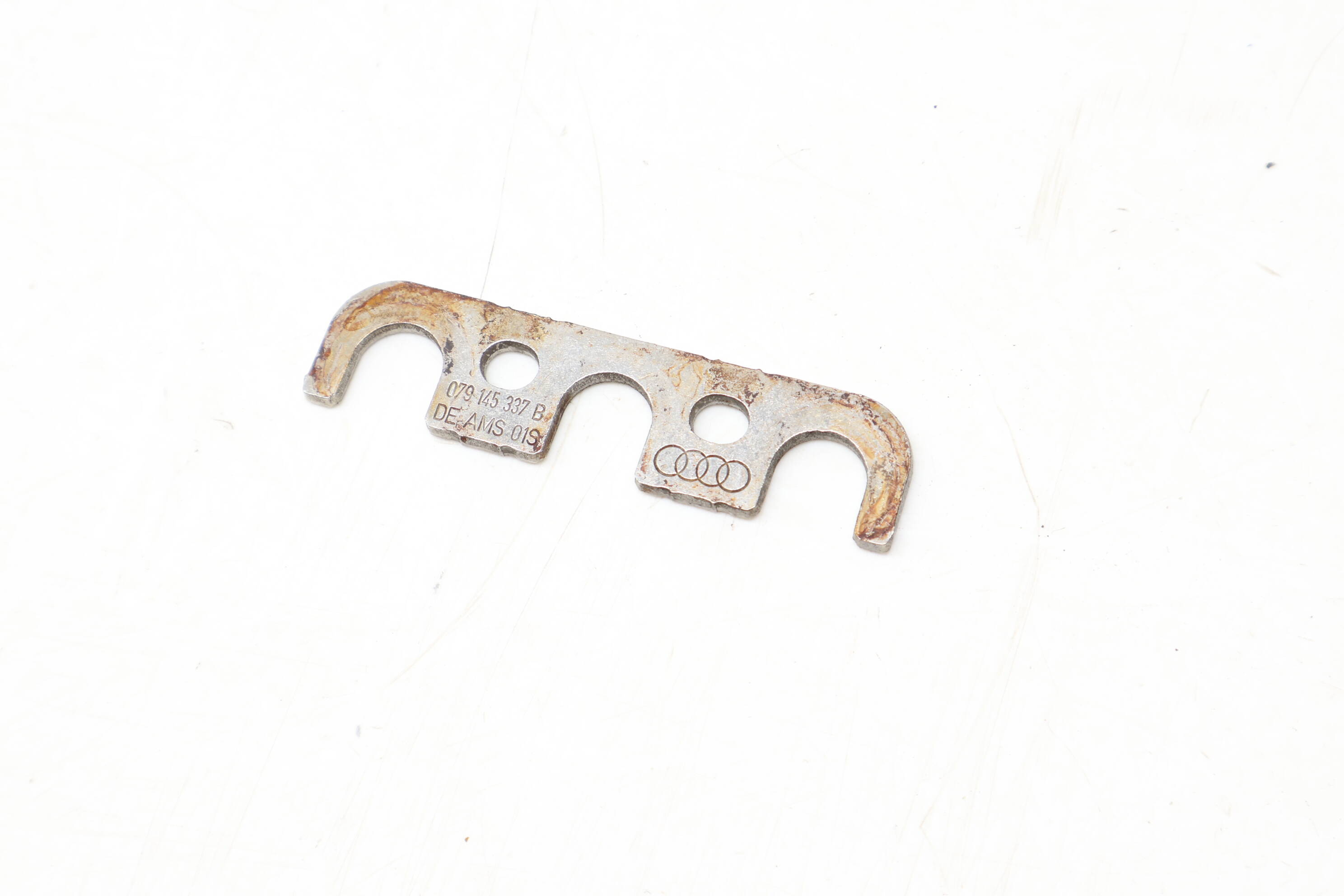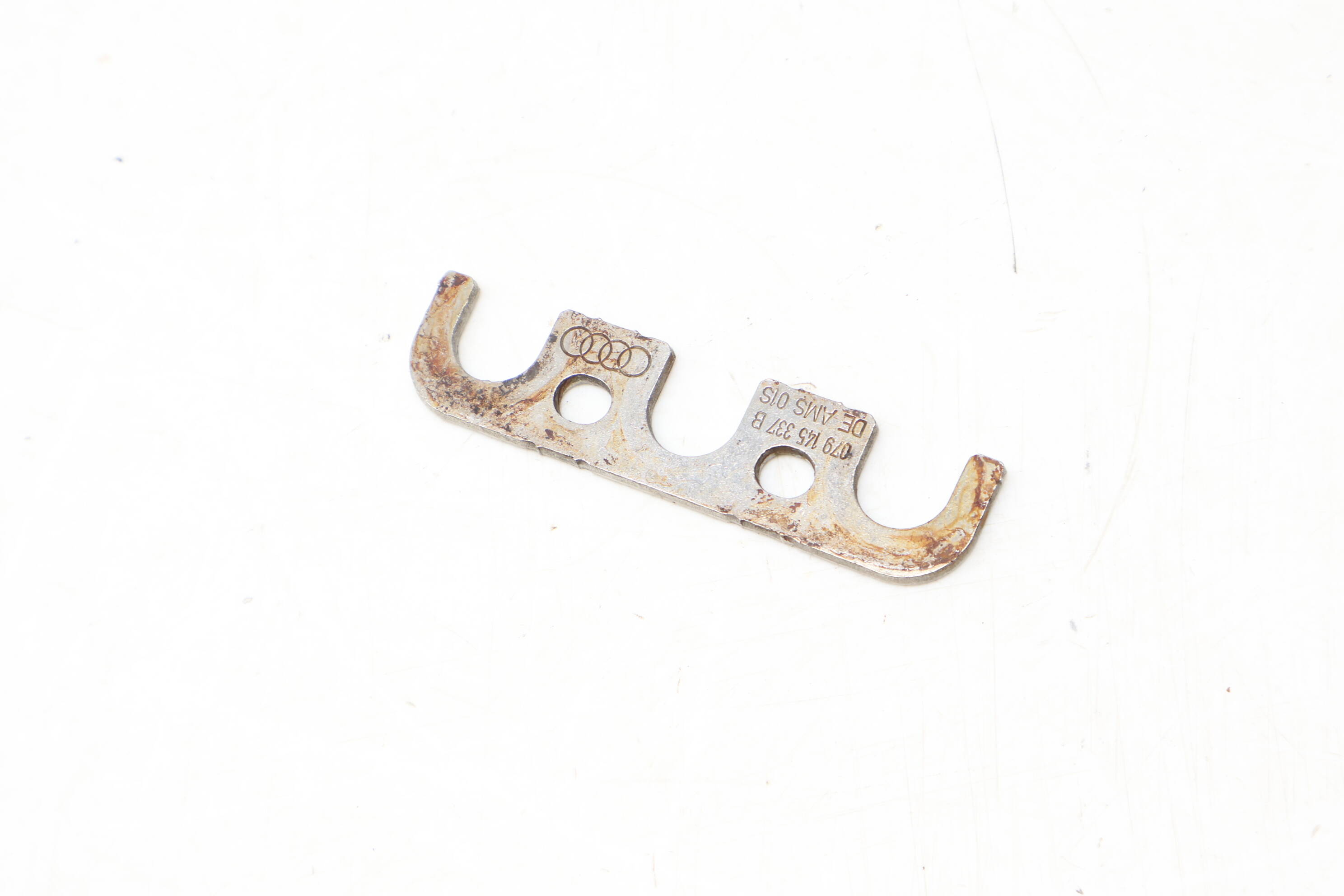 This OEM Turbo Bolt Clip / Holder (Part Number 079145337B) is a critical component for securely mounting the turbocharger on various Audi models, including the A8 Quattro, S6, S7, S8, and RS7 from model years 2013 to 2018 equipped with the 4.0L V8 gas engine. Positioned on the left or right side, this part prevents the turbo unit from shifting during operation, addressing common issues such as vibration and noise caused by worn or damaged clips. Known also as a lug, this genuine factory-original part ensures reliability and performance, sourced directly from salvage vehicles for authenticity. Suitable for replacements, it's the ideal solution for restoring proper turbo function.
