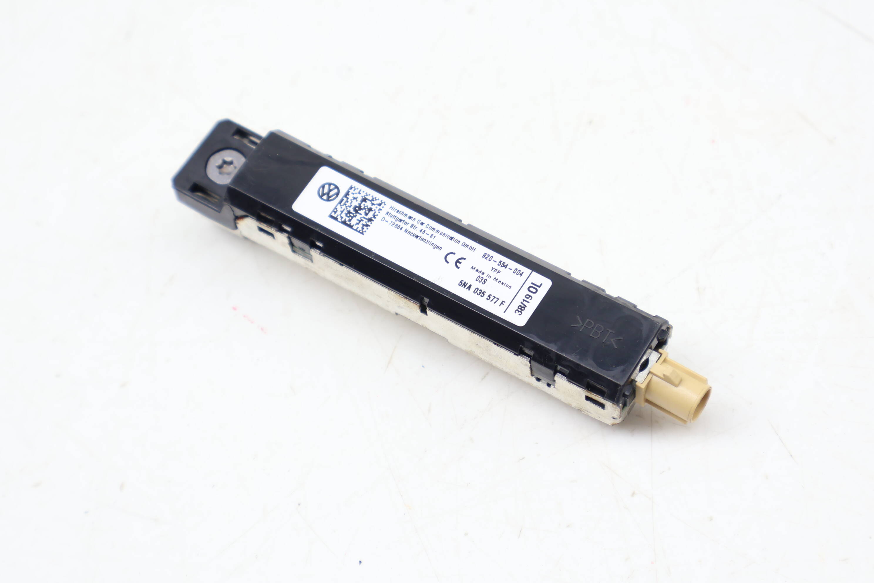 Enhance your vehicle's communication capabilities with the OEM Upper Antenna Booster, part number 5NA035577F. This genuine component is specifically designed for the left placement in 2018-2024 Volkswagen Tiguan models, including S, SE, SEL, and premium variants, equipped with the 2.0L L4 gas engine. The antenna booster's primary function is to improve radio reception and overall signal strength, resolving common issues like poor audio performance or intermittent connectivity. As an authentic manufacturer part sourced directly from salvage vehicles, its integrity guarantees seamless integration with your vehicle's audio system. Compatible replacement parts include 5Q0035456A, 5Q0035507AB5FQ, and 5G6919605D. Maintain your Tiguan’s functionality with this reliable OEM component.