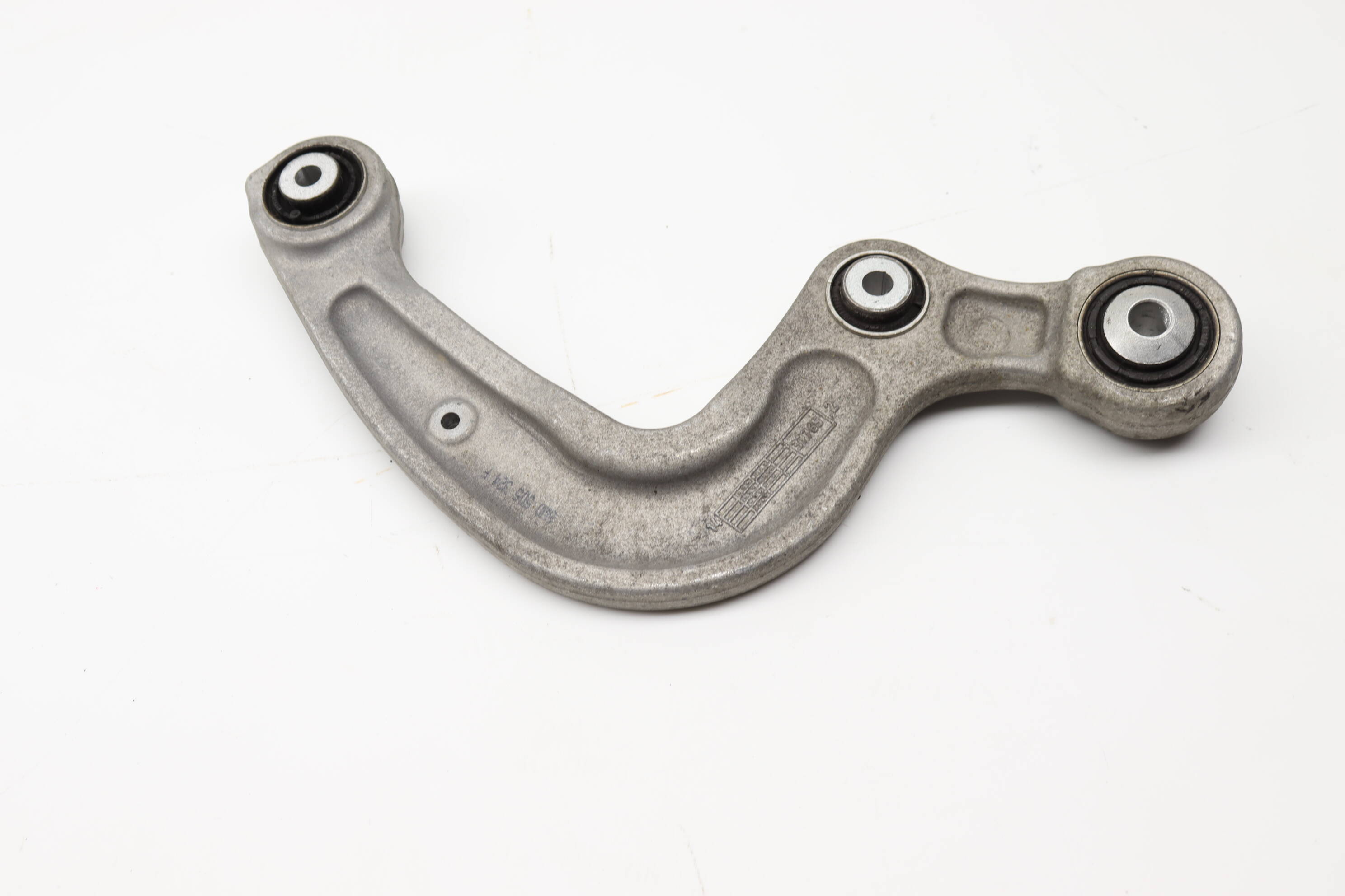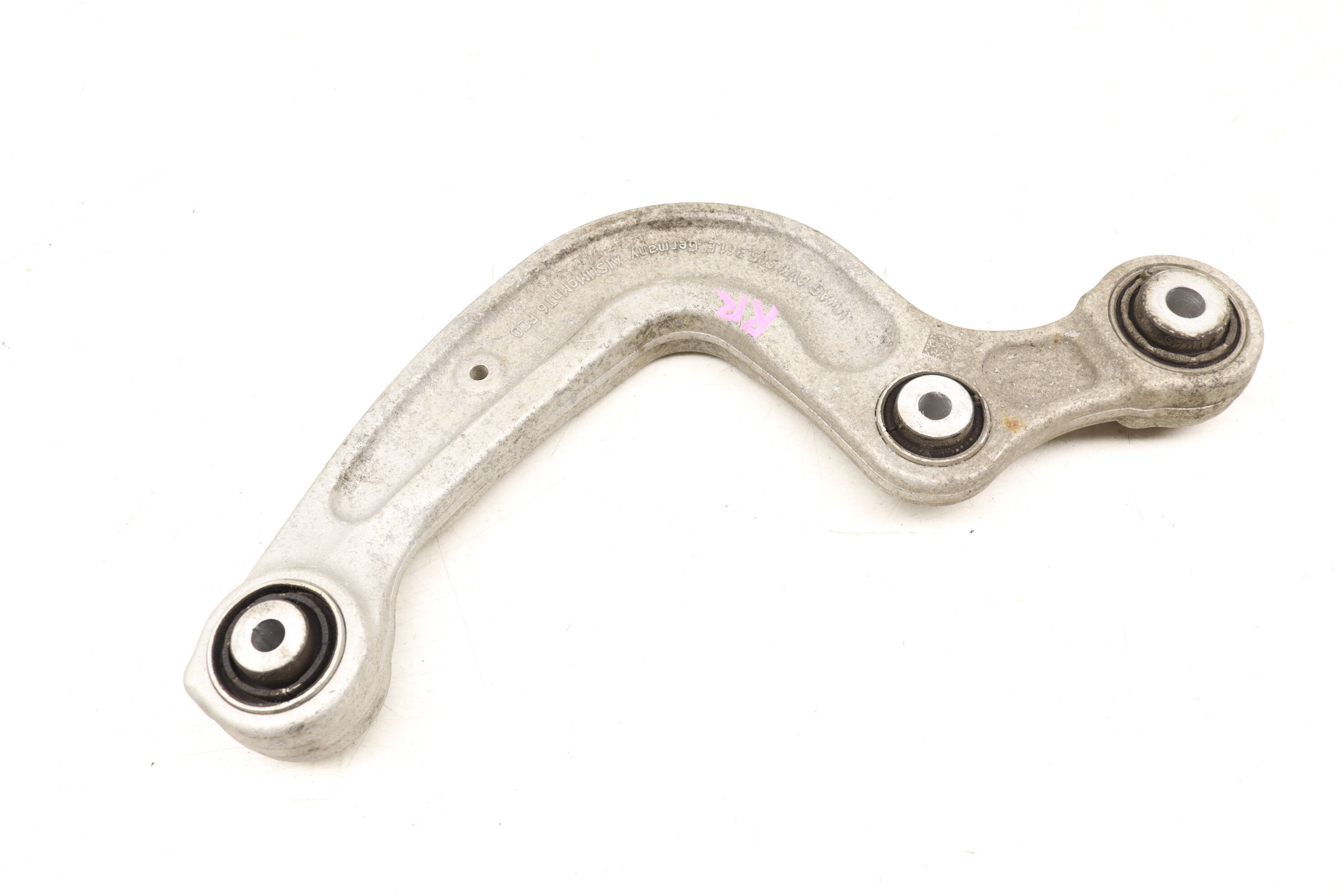 The right rear upper control arm, OEM part number 8W0505324F, is essential for maintaining the suspension geometry of your Audi A4, A5, RS5, and S4 models from 2016 to 2023. This factory-original component significantly enhances vehicle stability and handling by connecting the wheel assembly to the chassis. Over time, rear control arms may experience wear or damage, leading to issues like poor alignment, uneven tire wear, and compromised ride quality. This upper control arm includes bushings and requires specific bolts for installation, ensuring a reliable fit. Replace your worn component with this genuine part to restore optimal performance and safety in your Audi.